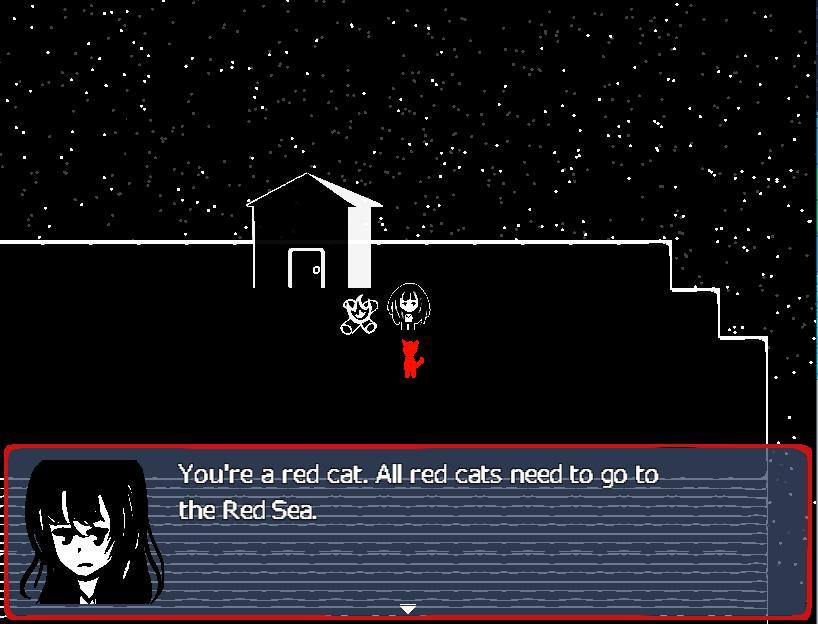 A short and cute adventure game featuring a cat. Go through different locations and meet various characters, explore the world, but don't forget your goal, The Red Sea!